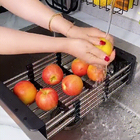 Multifunctional use - The sink drainage shelf can drain dishes or rinse vegetables and fruits. It can contain several cups and dishes at the same time. After cleaning, vegetables and fruits can also be put at the top to drain the water, comfortable to use.