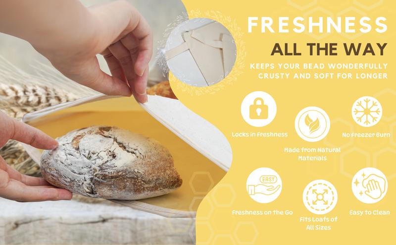 Sourdough Bread Bags & Locks in Freshness: Unlike bread boxes, the breathable beeswax prevents moisture buildup, preserving bread quality longer. These reusable bags are ideal gifts for sourdough bakers, suitable for various breads and baked goods.