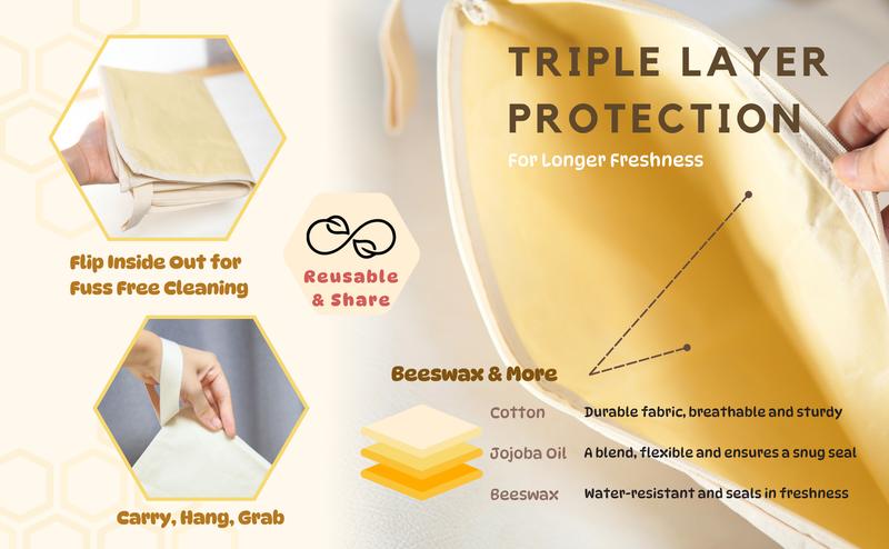 Sustainable Bread Storage with Beeswax: Keep homemade bread fresh with our beeswax bread bags. Featuring an L-shaped zipper and handle, they offer easy access and convenient carrying. These bags lock in freshness sustainably while preserving flavor and texture.